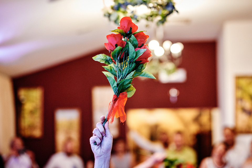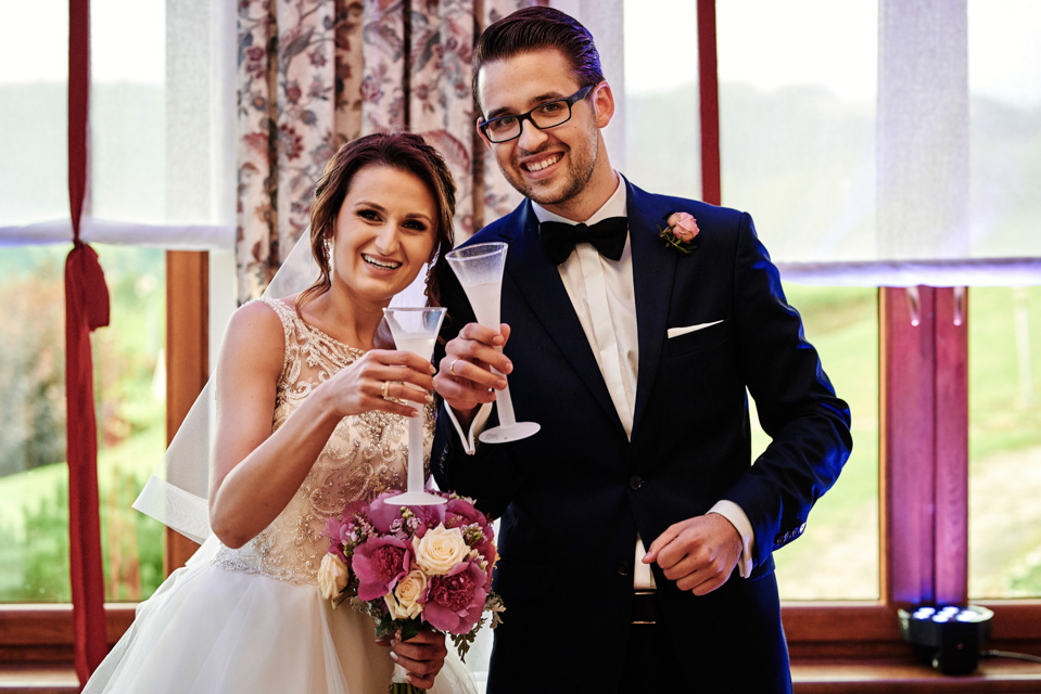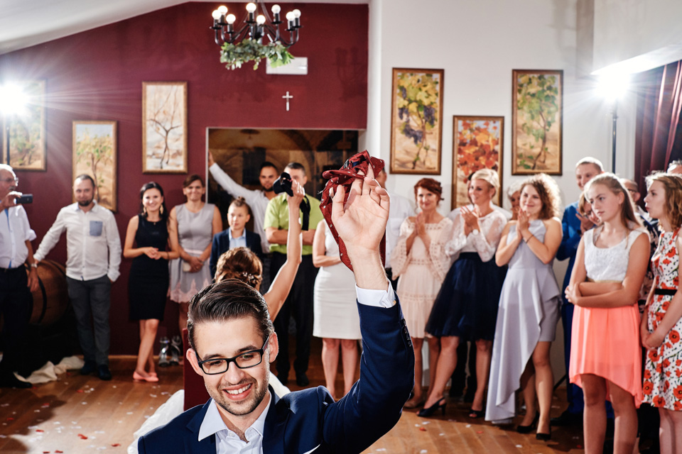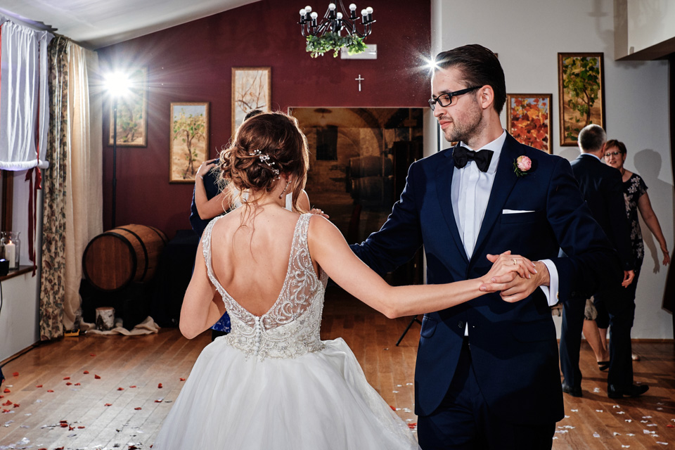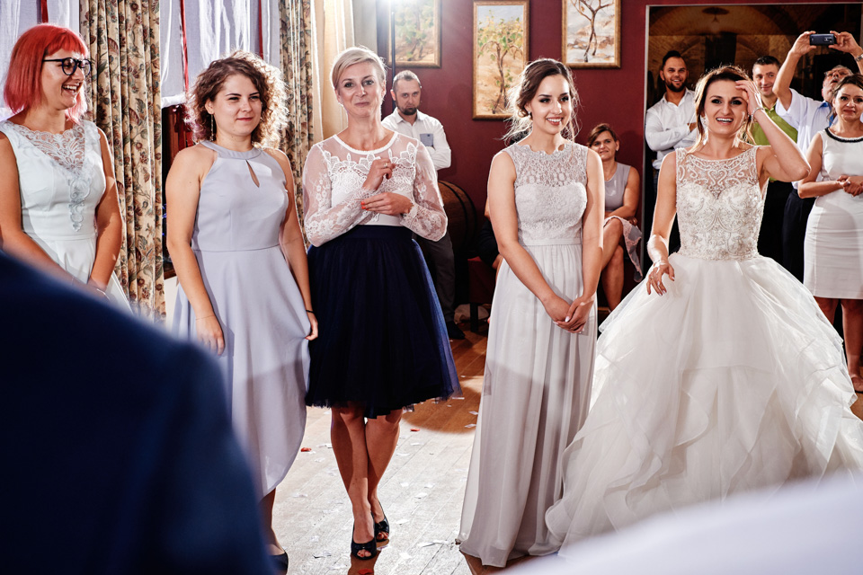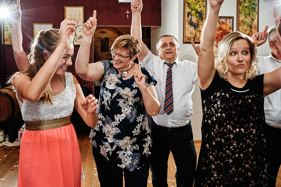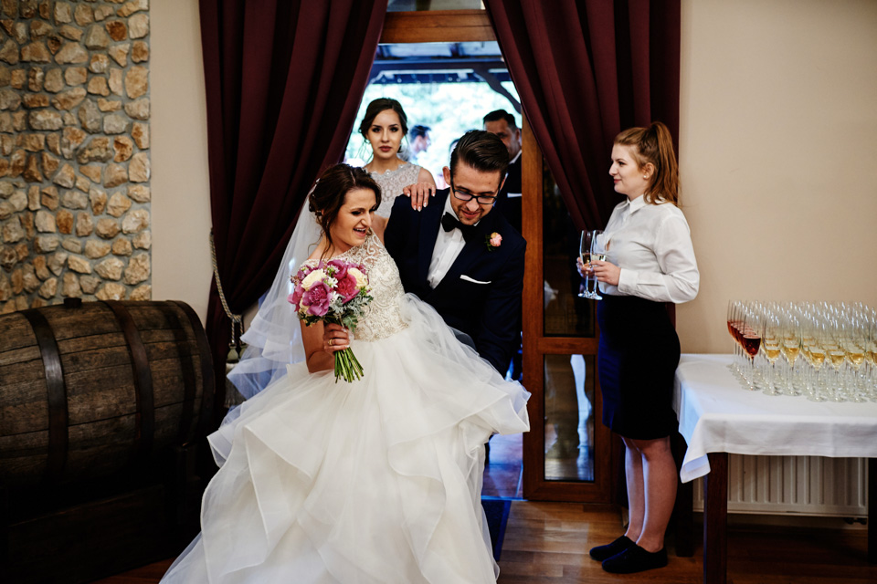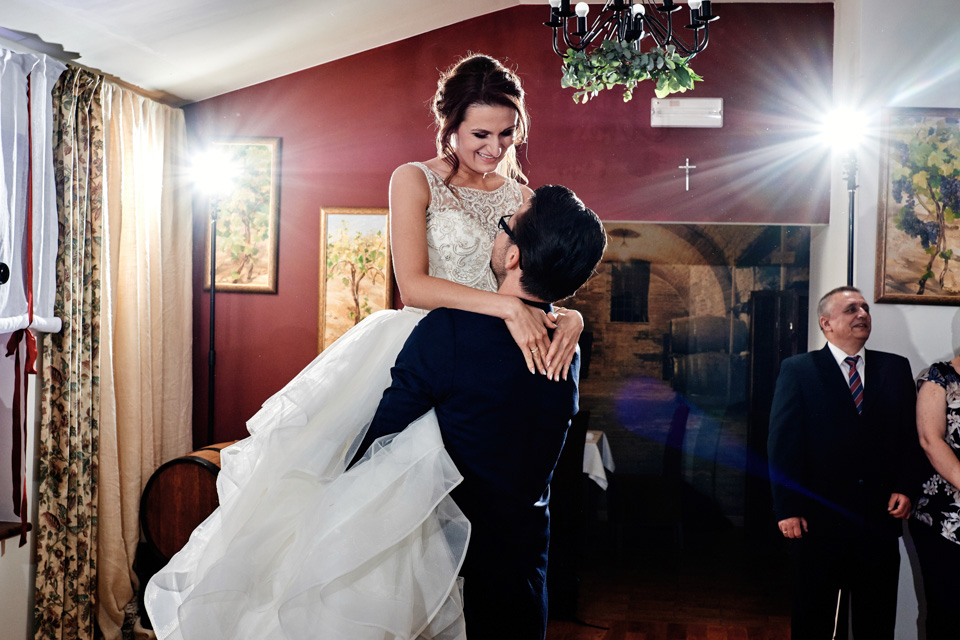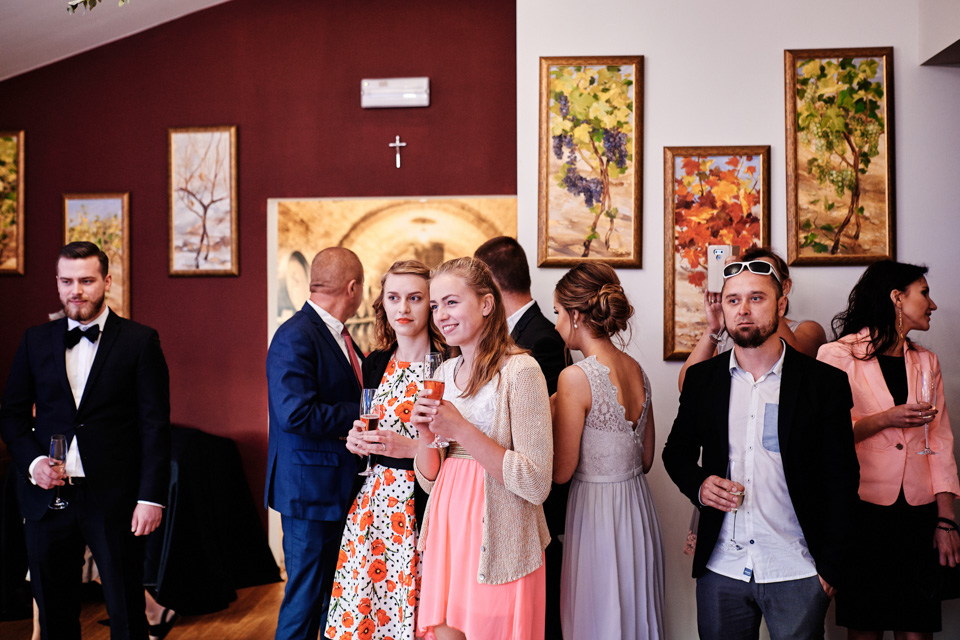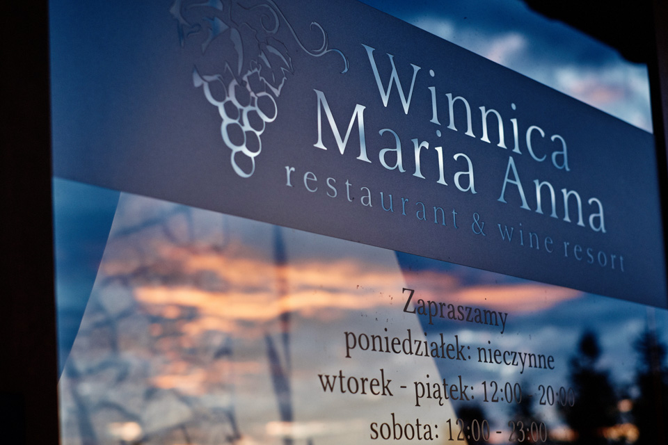 Przyjęcie weselne w Winnicy Maria Anna. Jak sama nazwa wskazuje znaczną część okolicy lokalu zajmują sadzonki winorośli. Winnicę i widok na okoliczne wzgórza można podziwiać z dużego tarasu. Na miejscu do spróbowania mamy także lokalne wino dla tych, którzy lubią takie trunki.