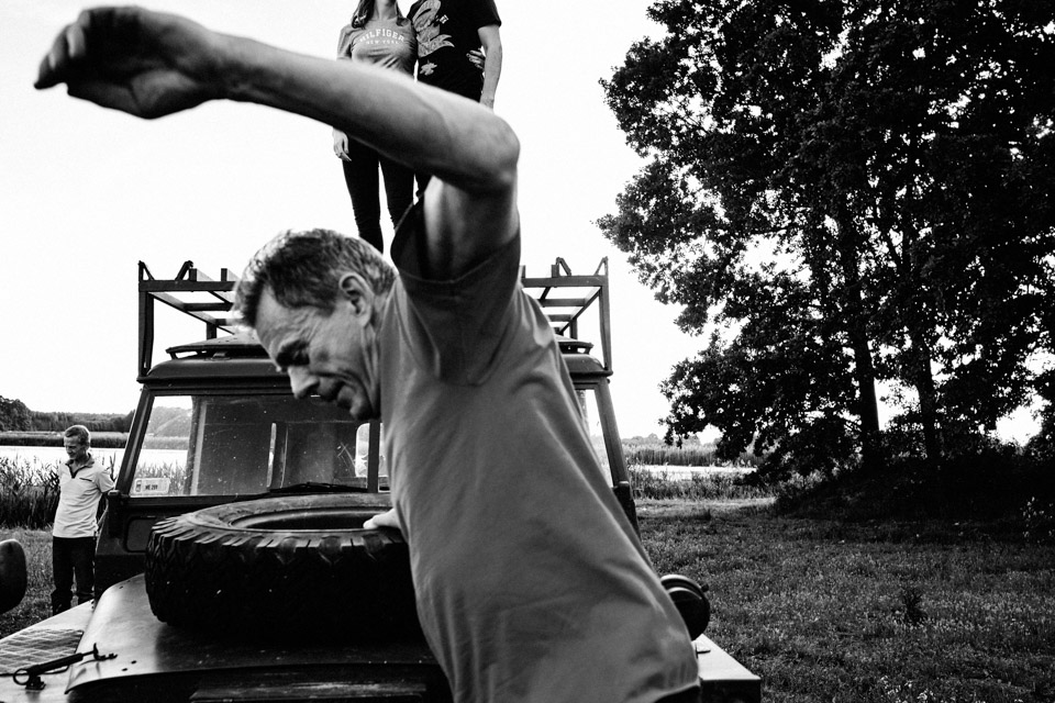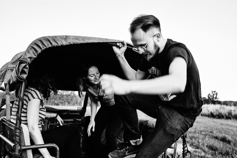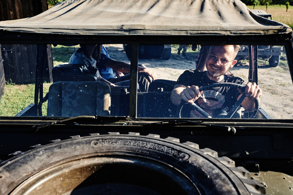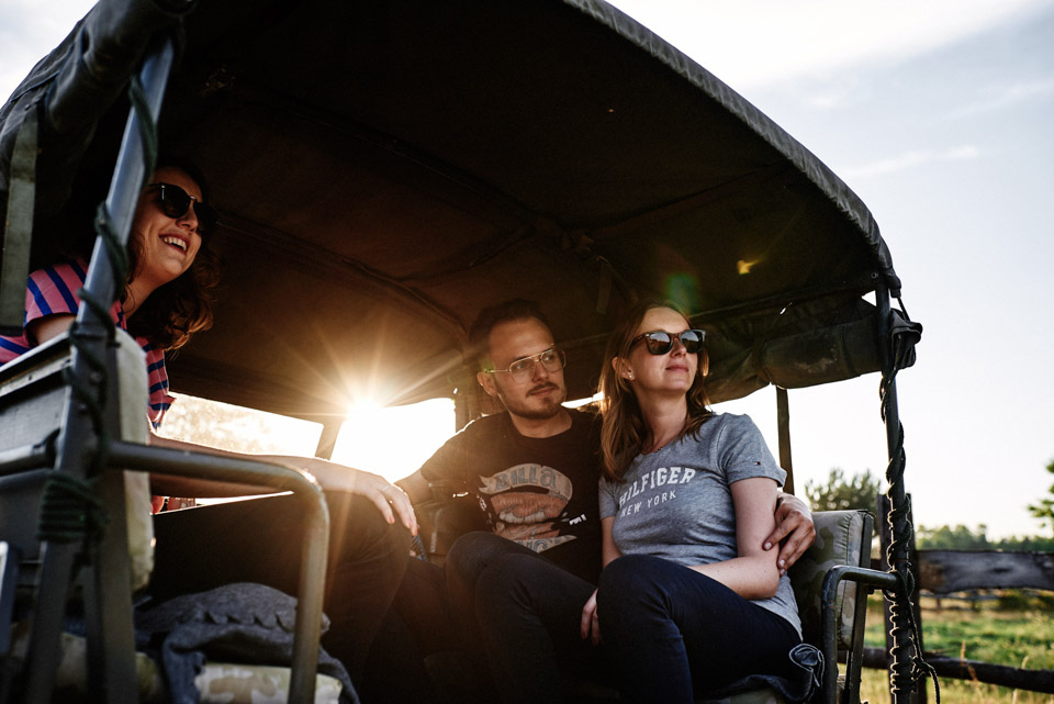 Tego dnia zabieram Was na rustykalne wesele w folwarku. Zaczynamy od zwiedzania okolicy Jeepami, oczywiście musiałem się zabrać razem z parą. Na brak mocnych wrażeń i siniaków nie mogłem narzekać, że nie wspomnę o przepięknej okolicy. Fotografowanie ślubu w takich okolicznościach przyrody to prawdziwa przyjemność, szczególnie dla kogoś kto lubi raz na jakiś czas oderwać się od zgiełku wielkiego miasta.