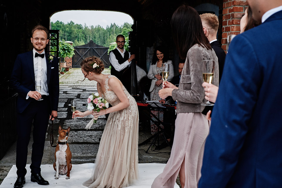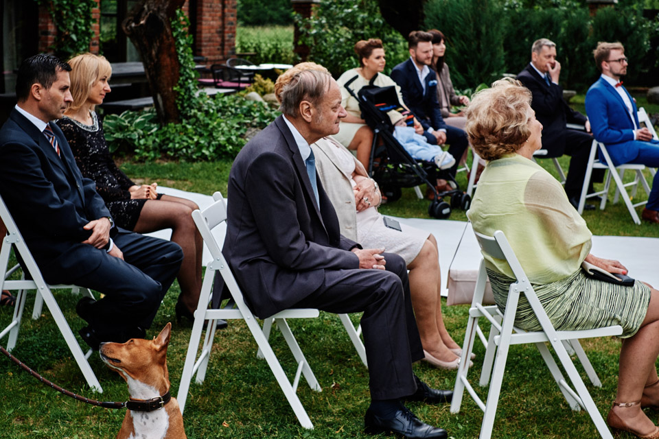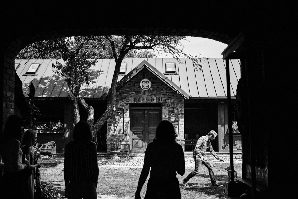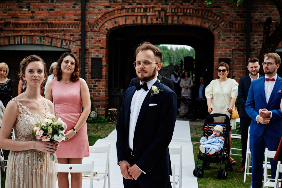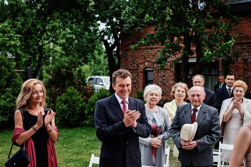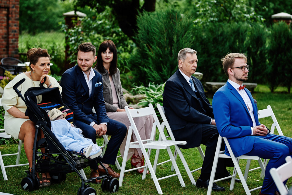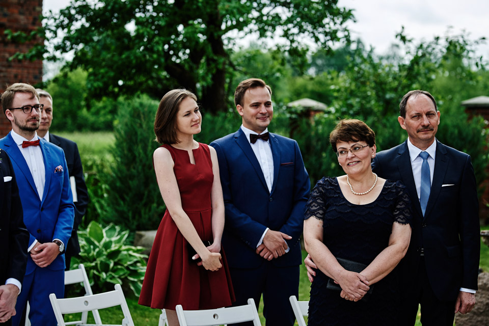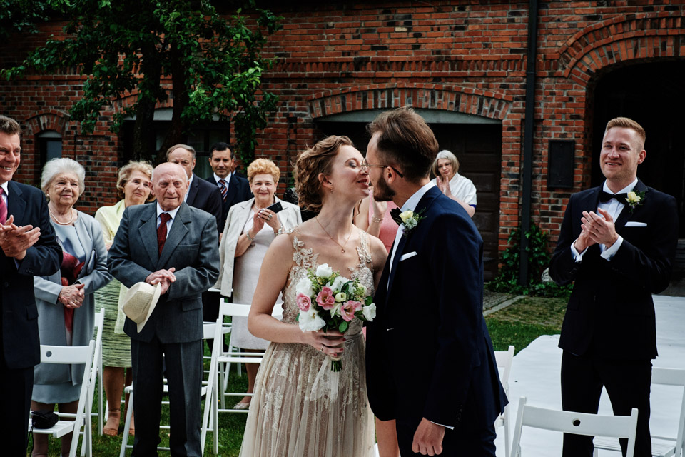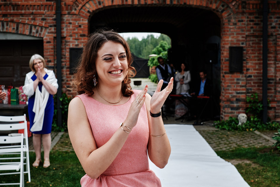 Najbliższy kościół był dość daleko ale dla mojej pary to nie problem. Postanowili zorganizować ceremonię cywilną w plenerze – świetny pomysł! Od przygotowań po wesele nie opuszczaliśmy folwarku więc pod kątem logistycznym było to świetne posunięcie. Ślub i wesele organizowane w plenerze dostarczają niepowtarzalnych wrażeń, a fotografie na łonie natury są jedną z najpiękniejszych pamiątek ślubnych.