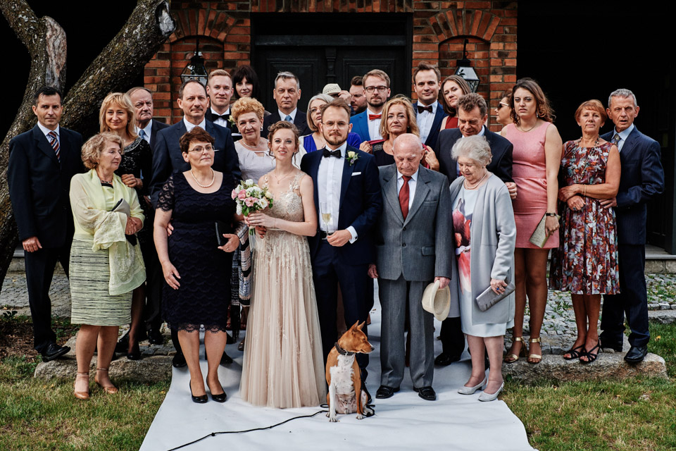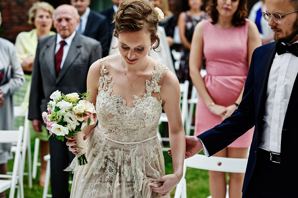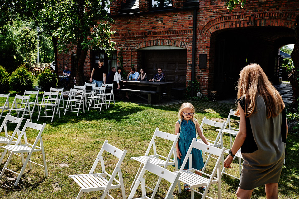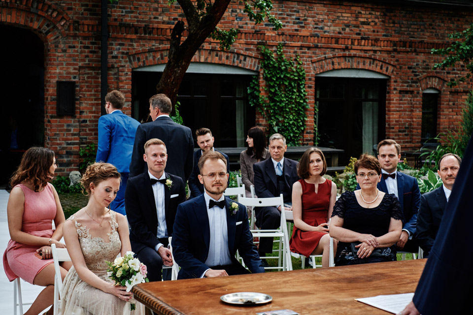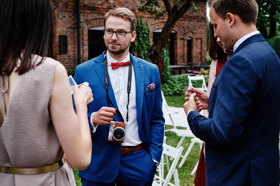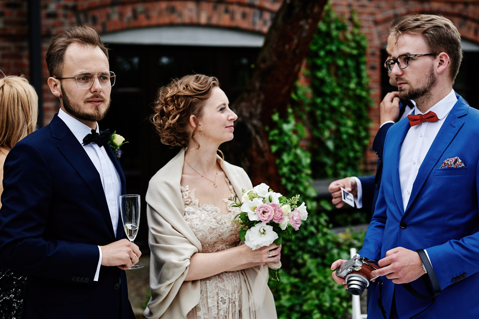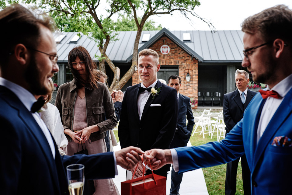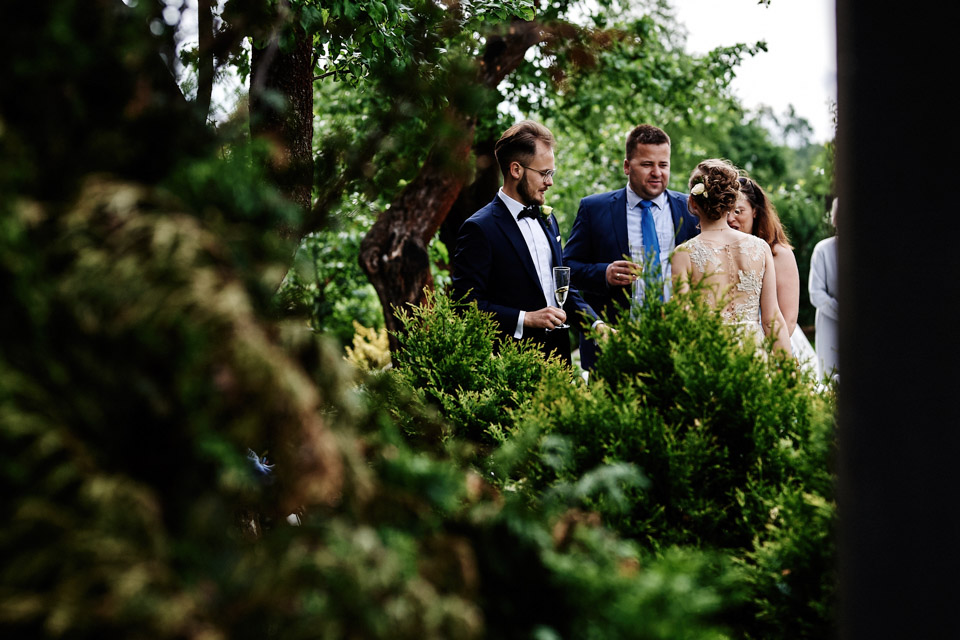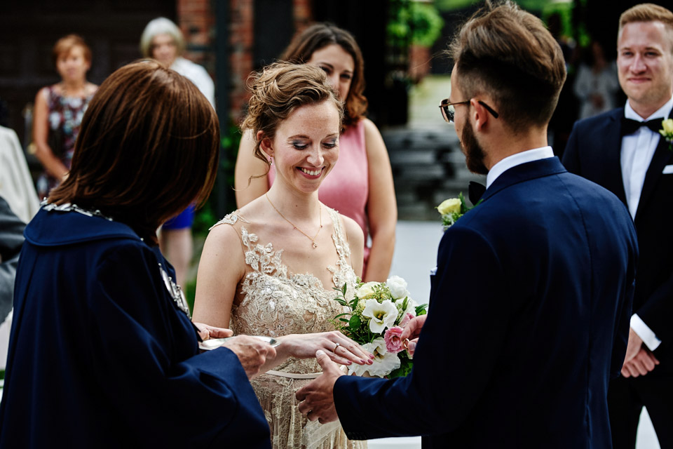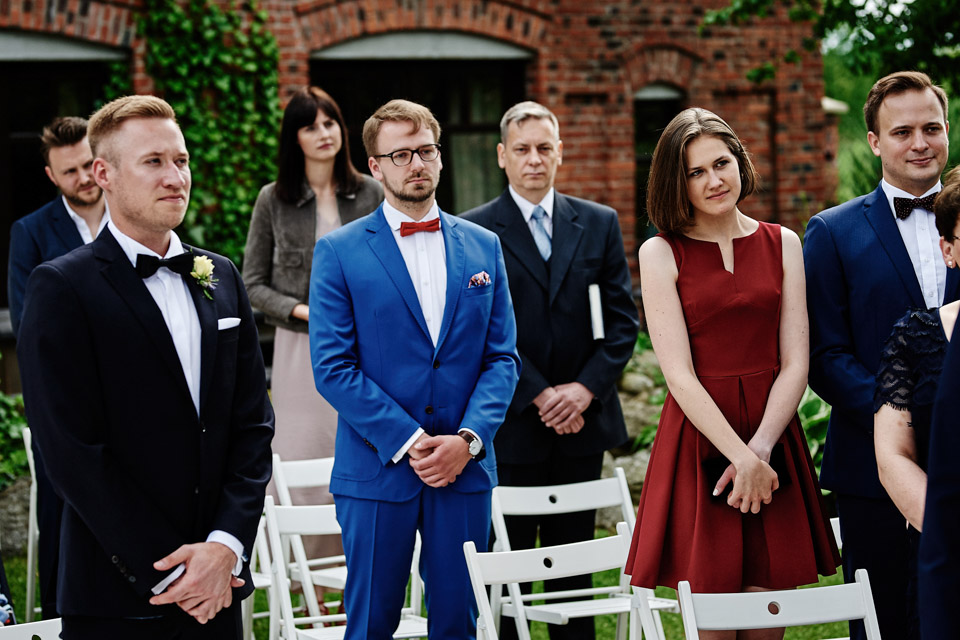 Najbliższy kościół był dość daleko ale dla mojej pary to nie problem. Postanowili zorganizować ceremonię cywilną w plenerze – świetny pomysł! Od przygotowań po wesele nie opuszczaliśmy folwarku więc pod kątem logistycznym było to świetne posunięcie. Ślub i wesele organizowane w plenerze dostarczają niepowtarzalnych wrażeń, a fotografie na łonie natury są jedną z najpiękniejszych pamiątek ślubnych.