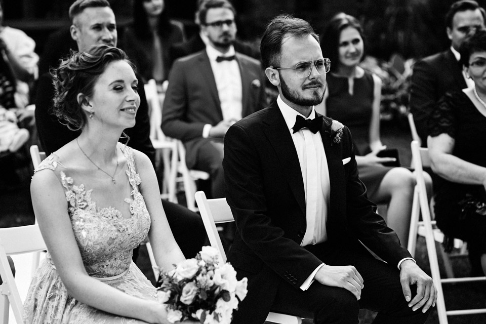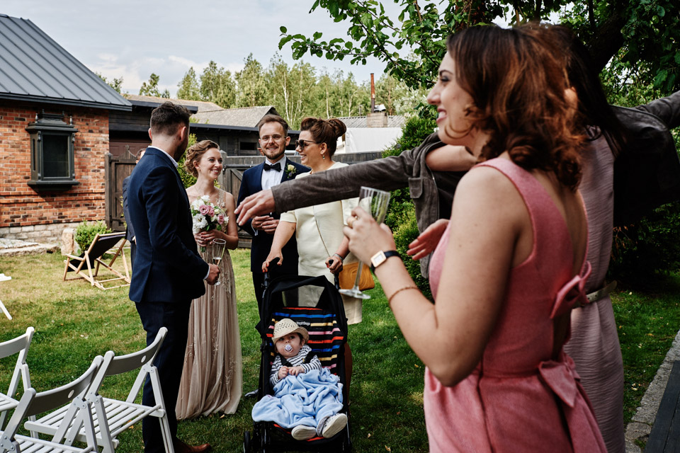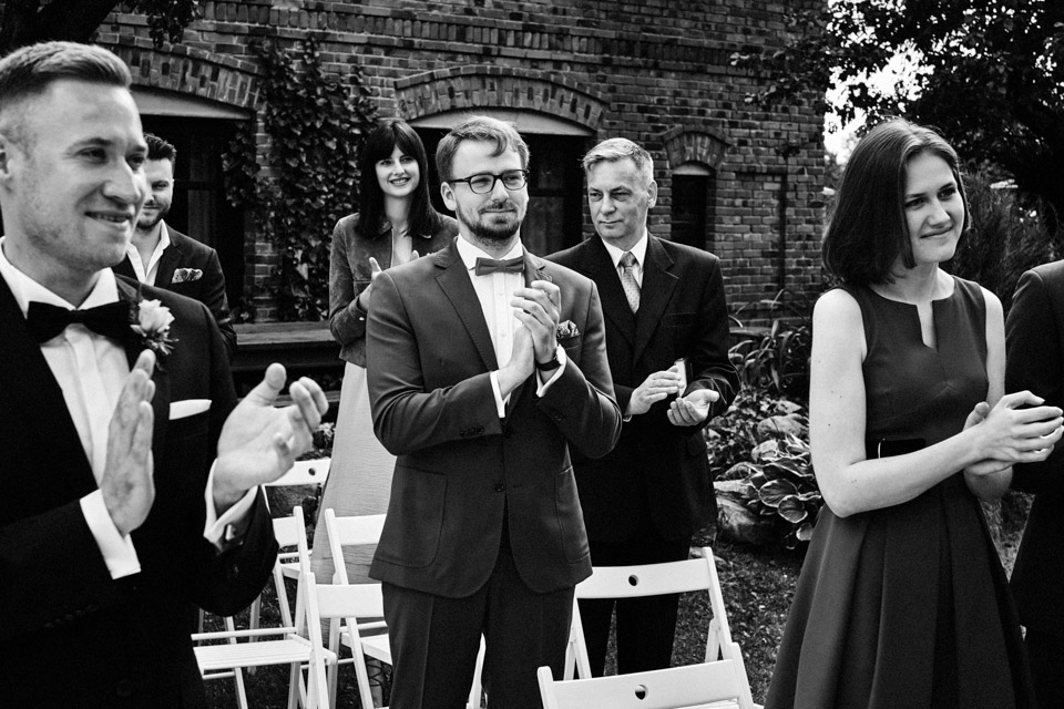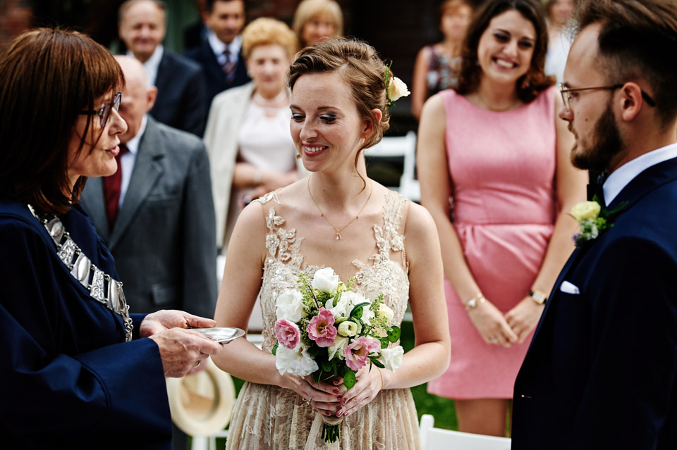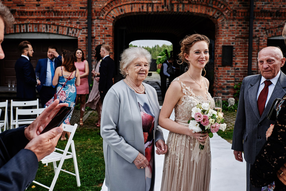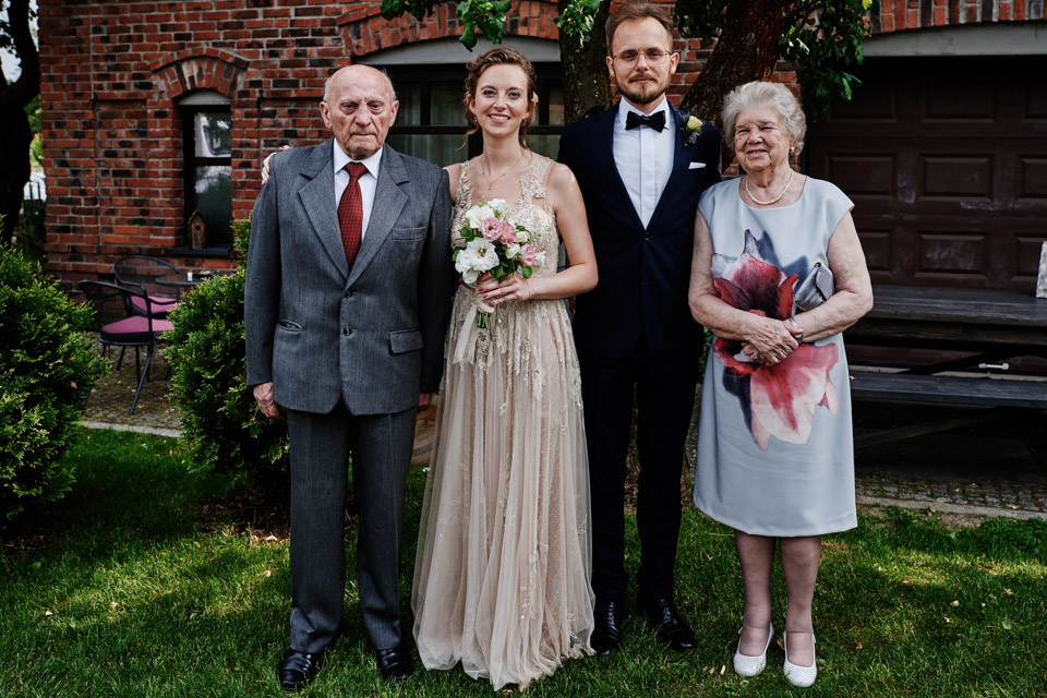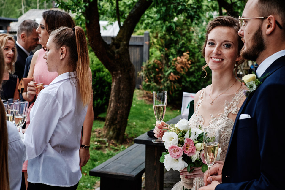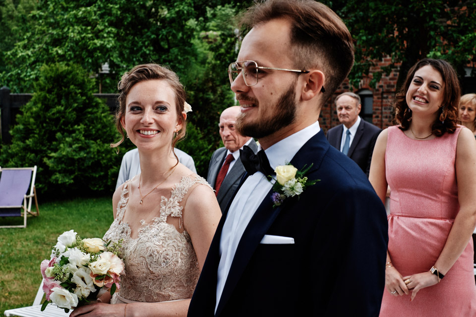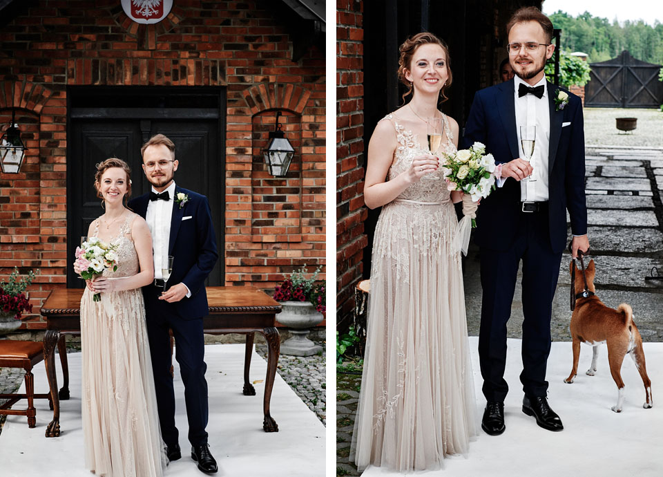Najbliższy kościół był dość daleko ale dla mojej pary to nie problem. Postanowili zorganizować ceremonię cywilną w plenerze – świetny pomysł! Od przygotowań po wesele nie opuszczaliśmy folwarku więc pod kątem logistycznym było to świetne posunięcie. Ślub i wesele organizowane w plenerze dostarczają niepowtarzalnych wrażeń, a fotografie na łonie natury są jedną z najpiękniejszych pamiątek ślubnych.
