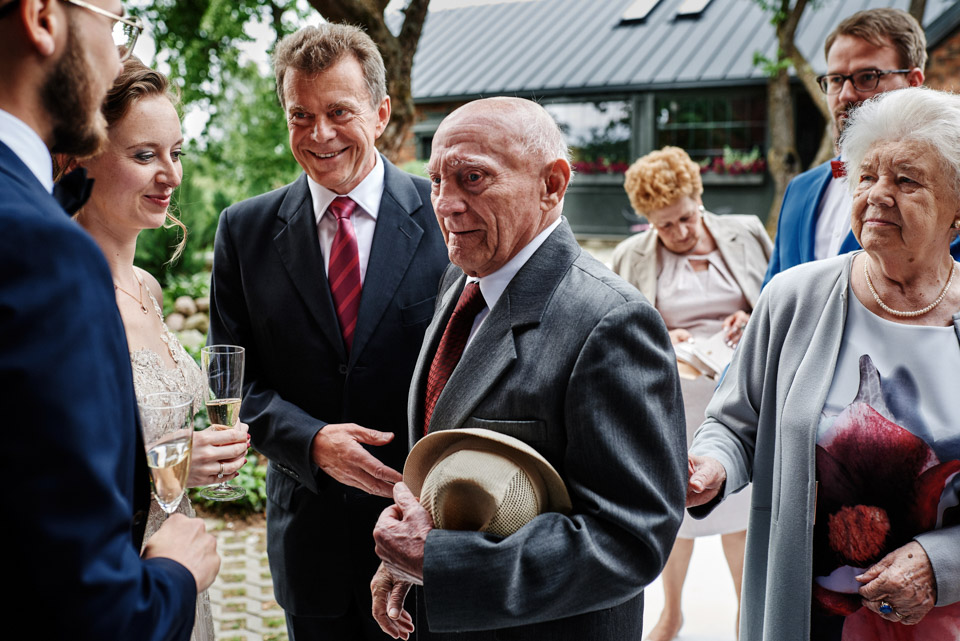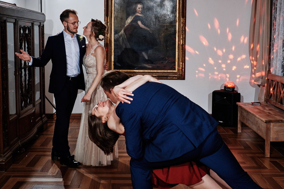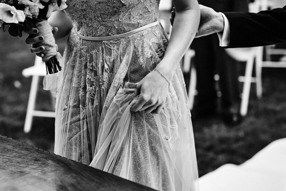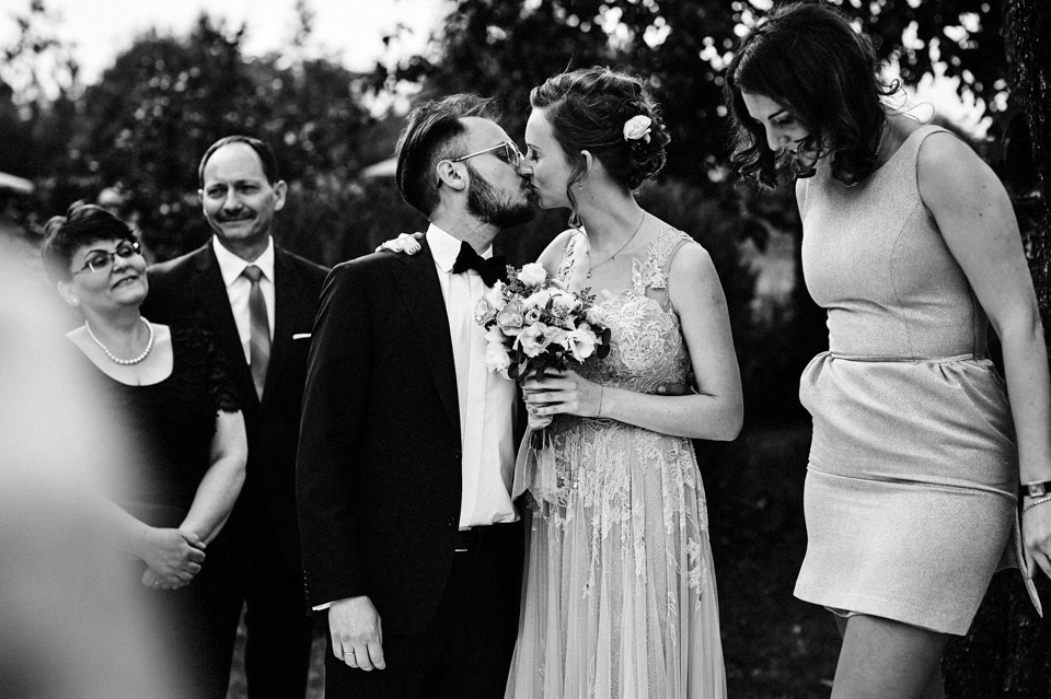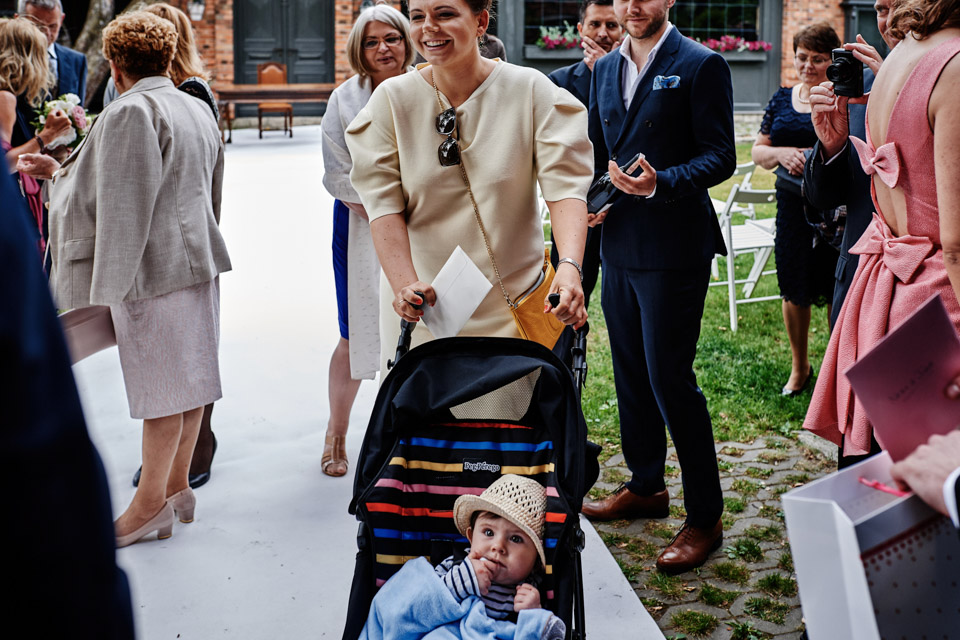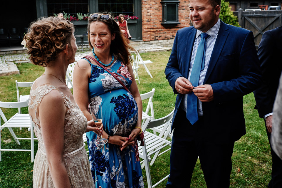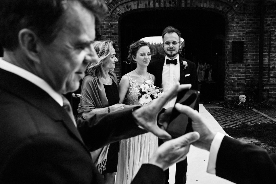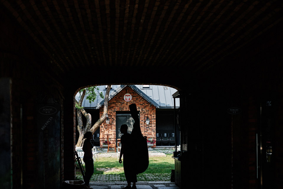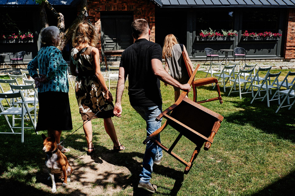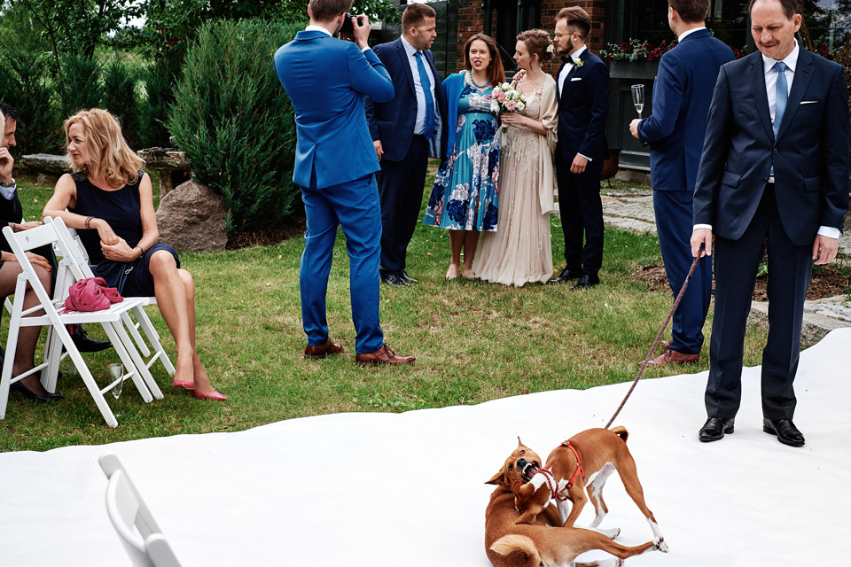 Najbliższy kościół był dość daleko ale dla mojej pary to nie problem. Postanowili zorganizować ceremonię cywilną w plenerze – świetny pomysł! Od przygotowań po wesele nie opuszczaliśmy folwarku więc pod kątem logistycznym było to świetne posunięcie. Ślub i wesele organizowane w plenerze dostarczają niepowtarzalnych wrażeń, a fotografie na łonie natury są jedną z najpiękniejszych pamiątek ślubnych.