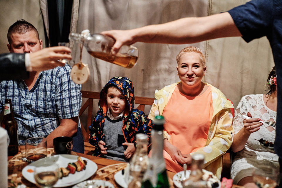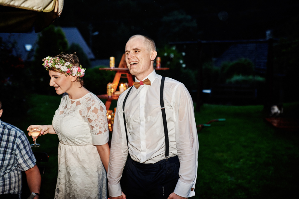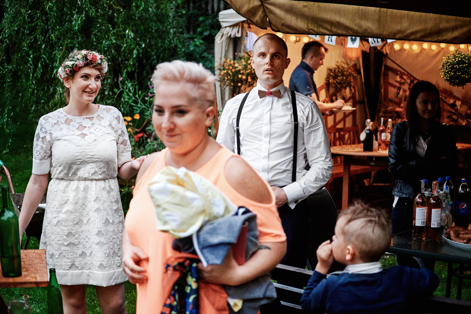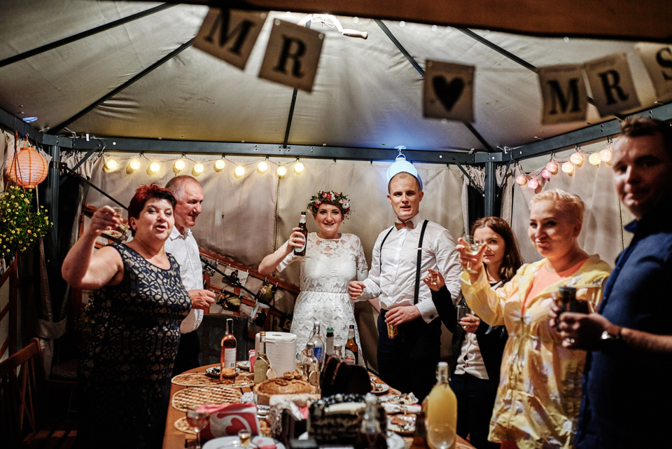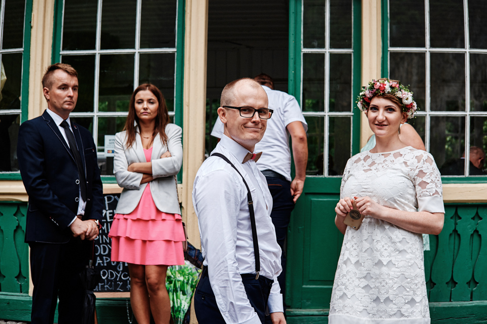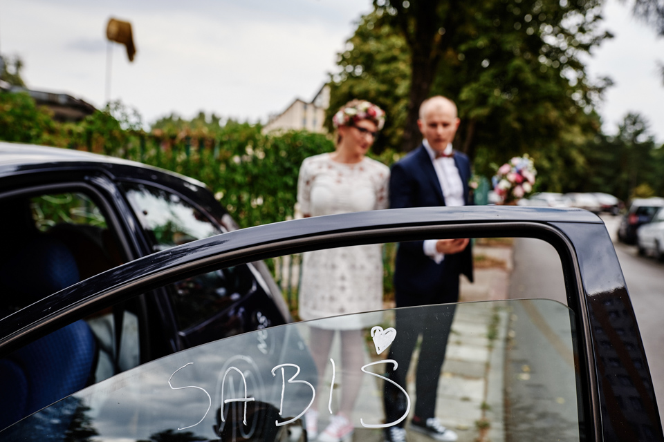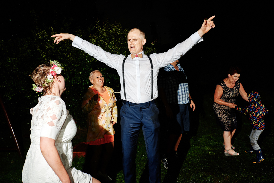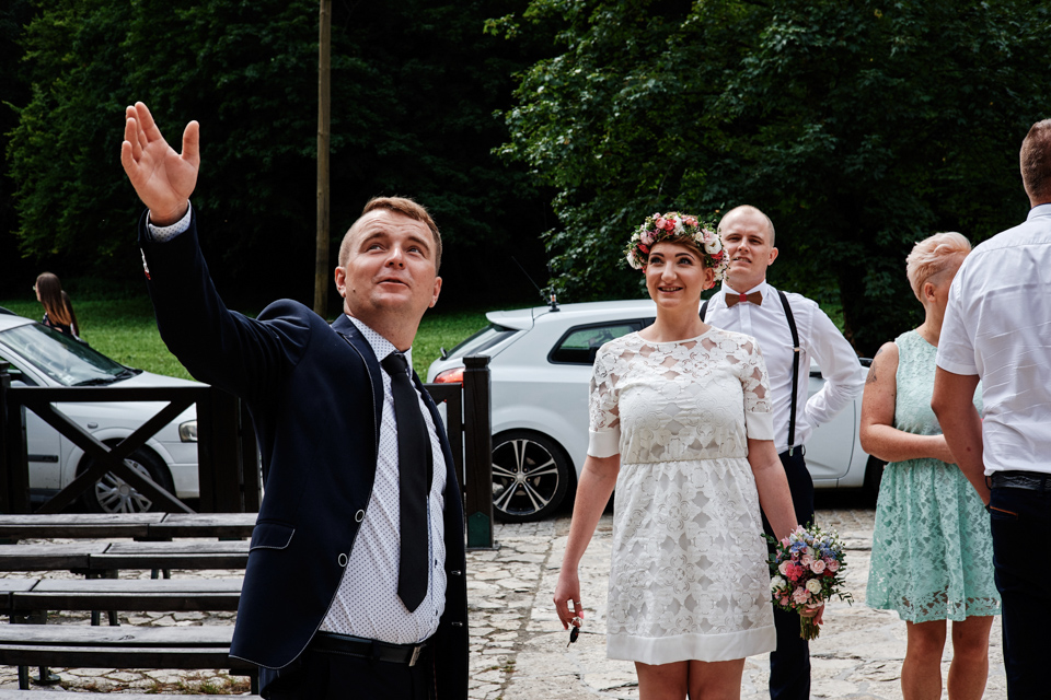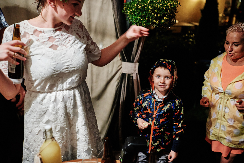 na początek będzie słonecznie ale plenerowe wesele w deszczu i przemoknięta para młoda to niecodzienny widok. Ale jeśli ktoś maluje swoje auto do ślubu flamastrami, zna Beksińskiego i lubi woodstockowe klimaty nie może się przejmować takim detalem jak ulewa.