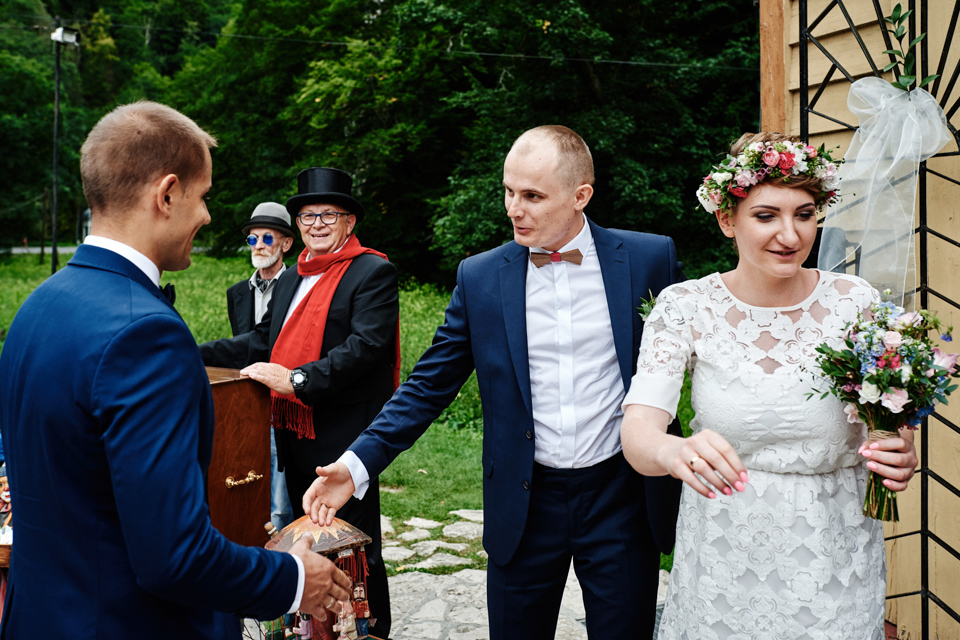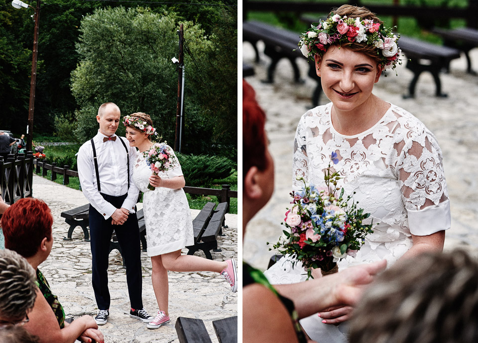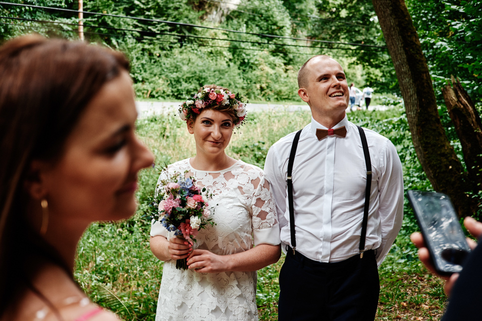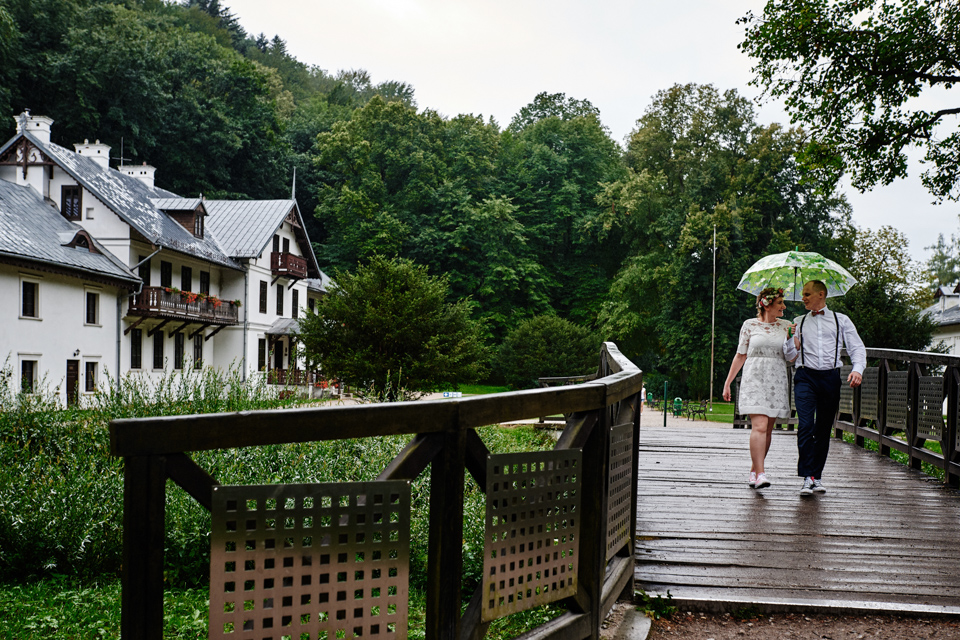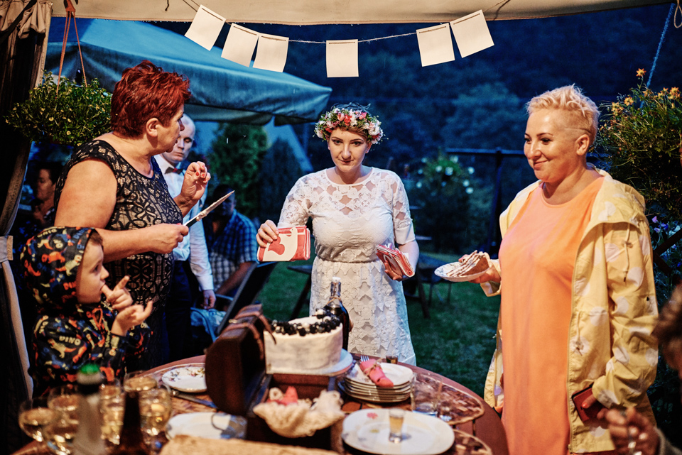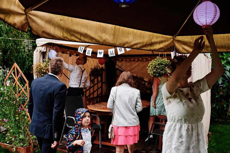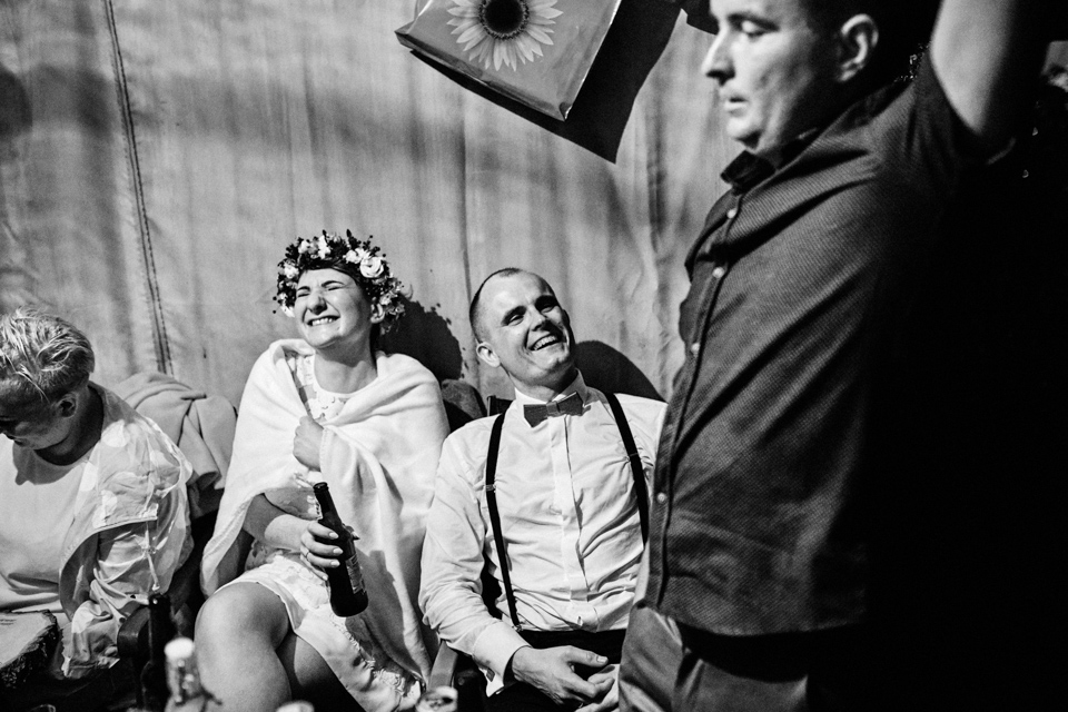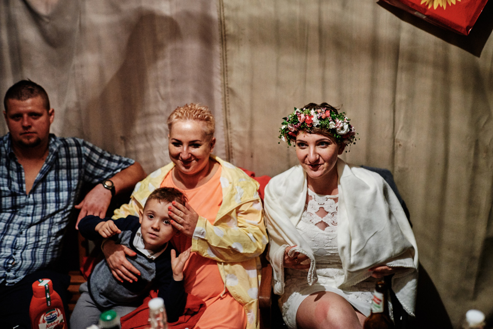 na początek będzie słonecznie ale plenerowe wesele w deszczu i przemoknięta para młoda to niecodzienny widok. Ale jeśli ktoś maluje swoje auto do ślubu flamastrami, zna Beksińskiego i lubi woodstockowe klimaty nie może się przejmować takim detalem jak ulewa.