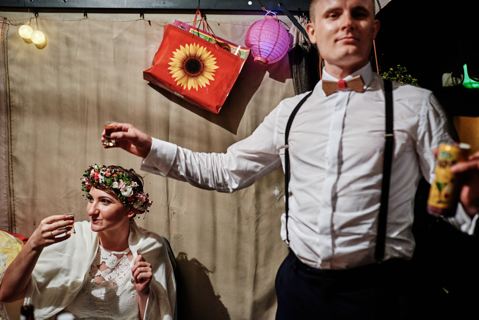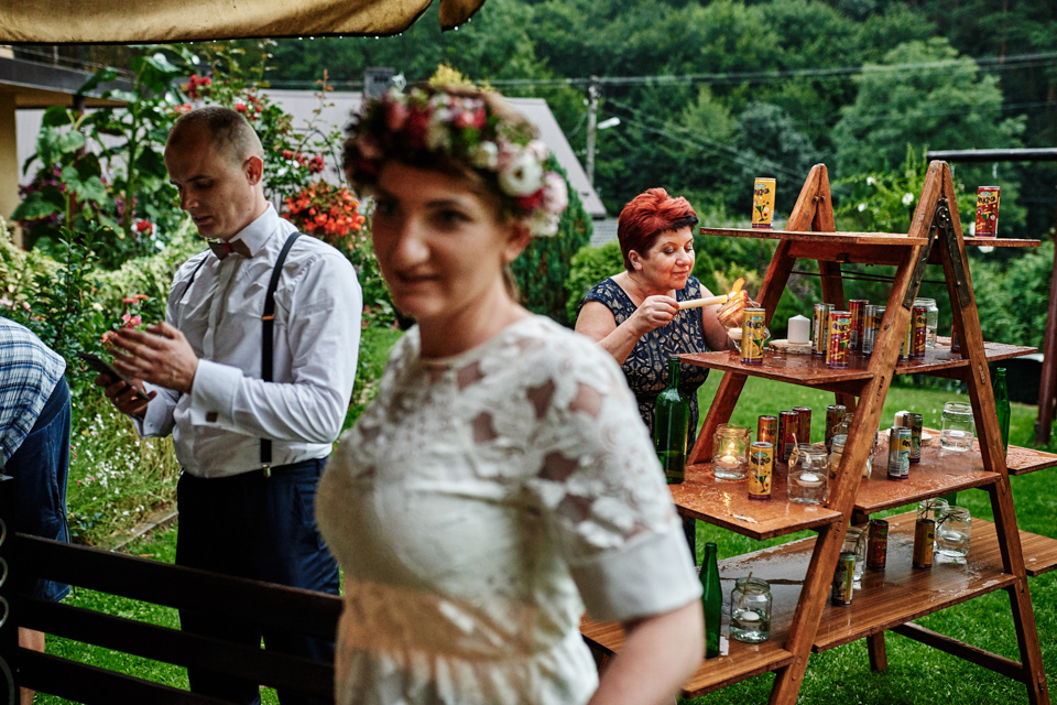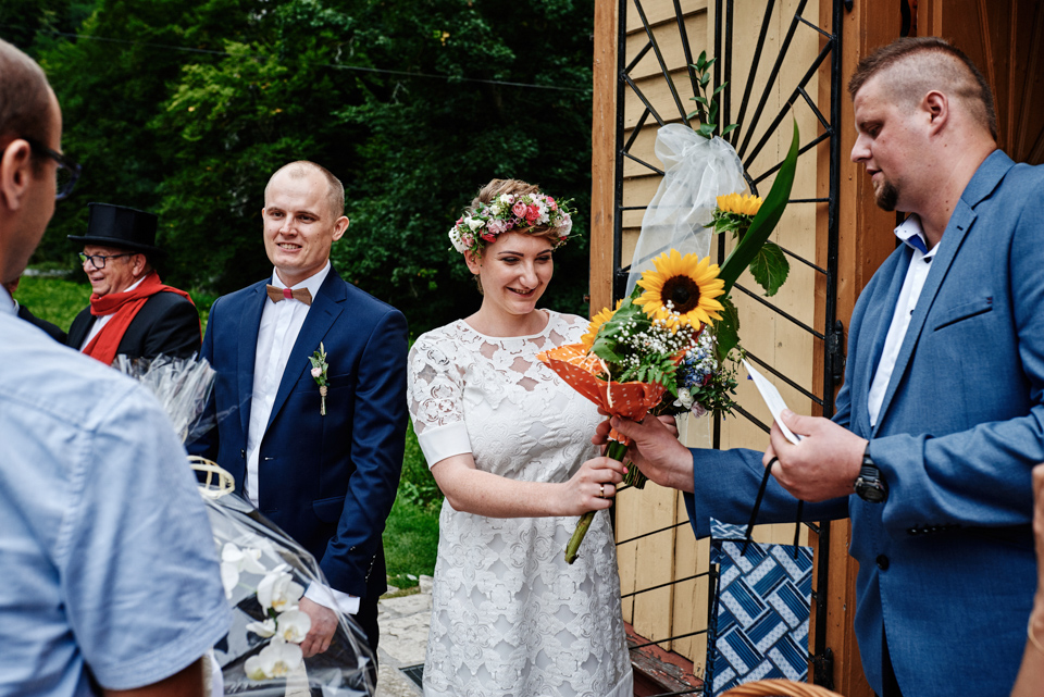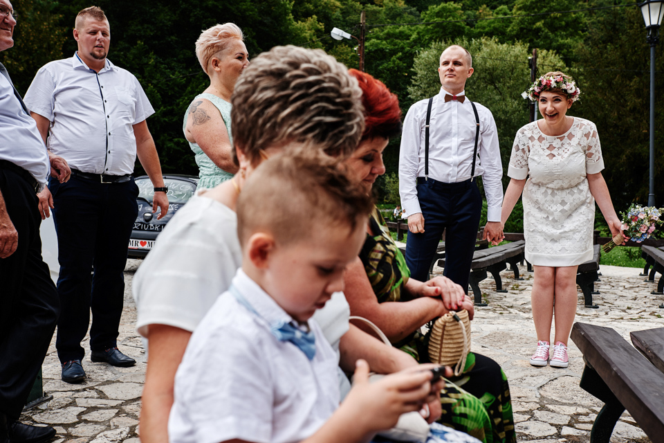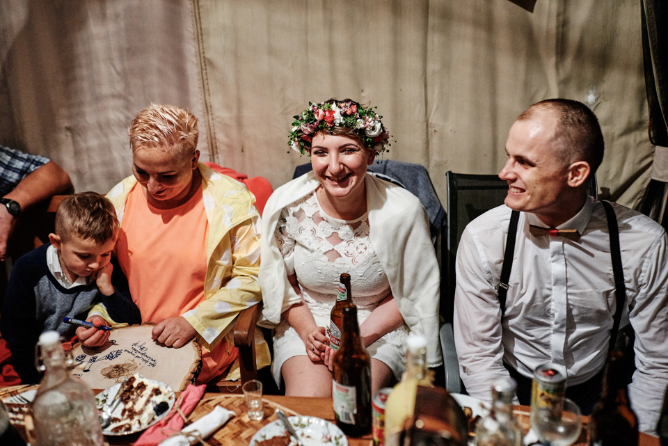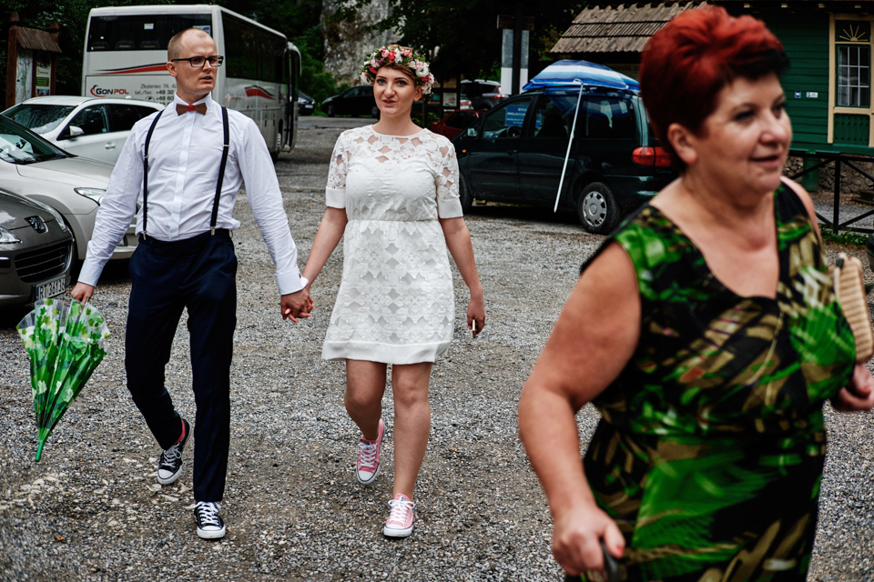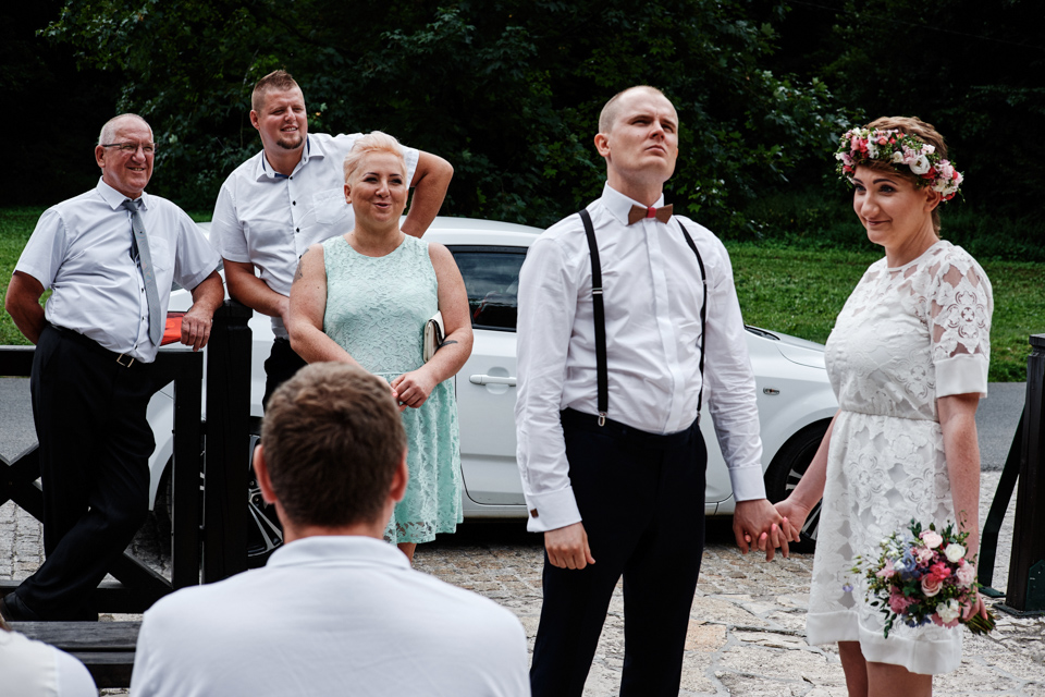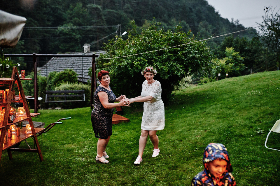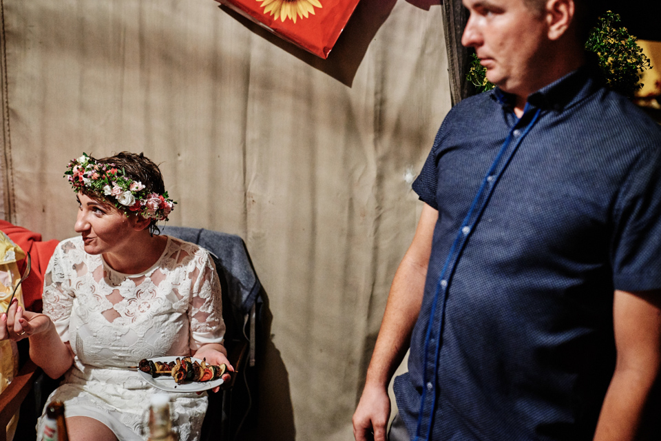 na początek będzie słonecznie ale plenerowe wesele w deszczu i przemoknięta para młoda to niecodzienny widok. Ale jeśli ktoś maluje swoje auto do ślubu flamastrami, zna Beksińskiego i lubi woodstockowe klimaty nie może się przejmować takim detalem jak ulewa.