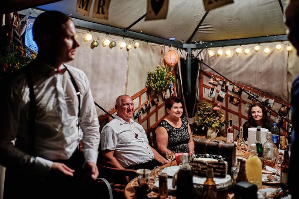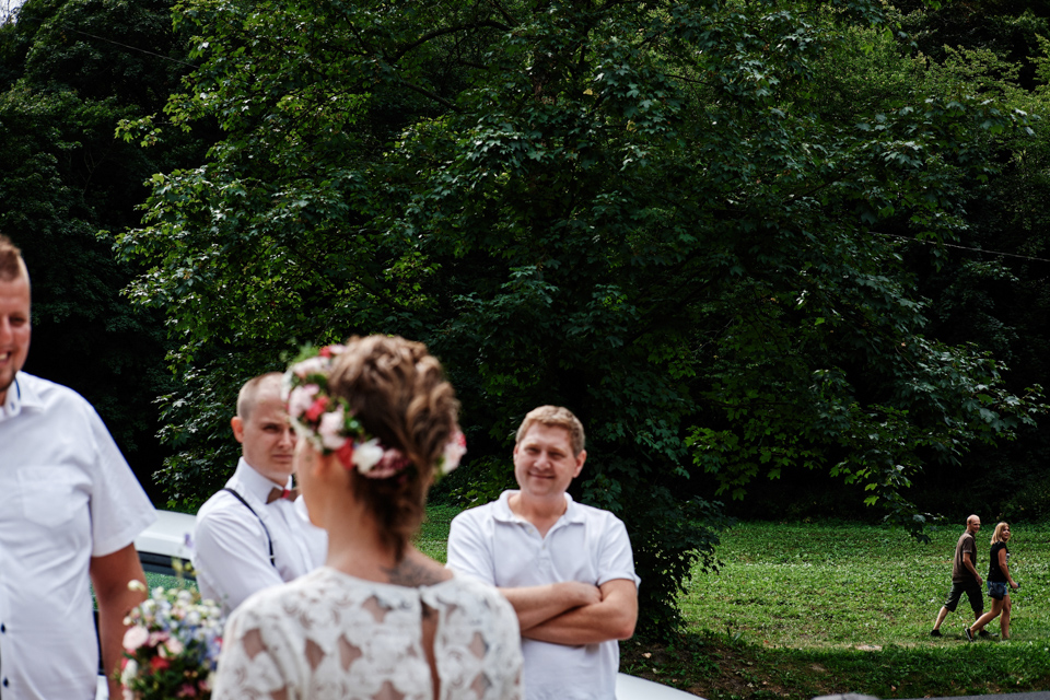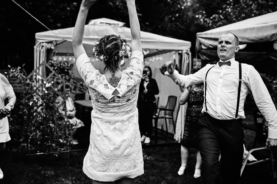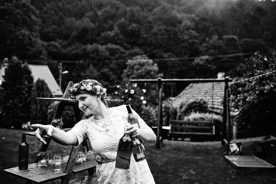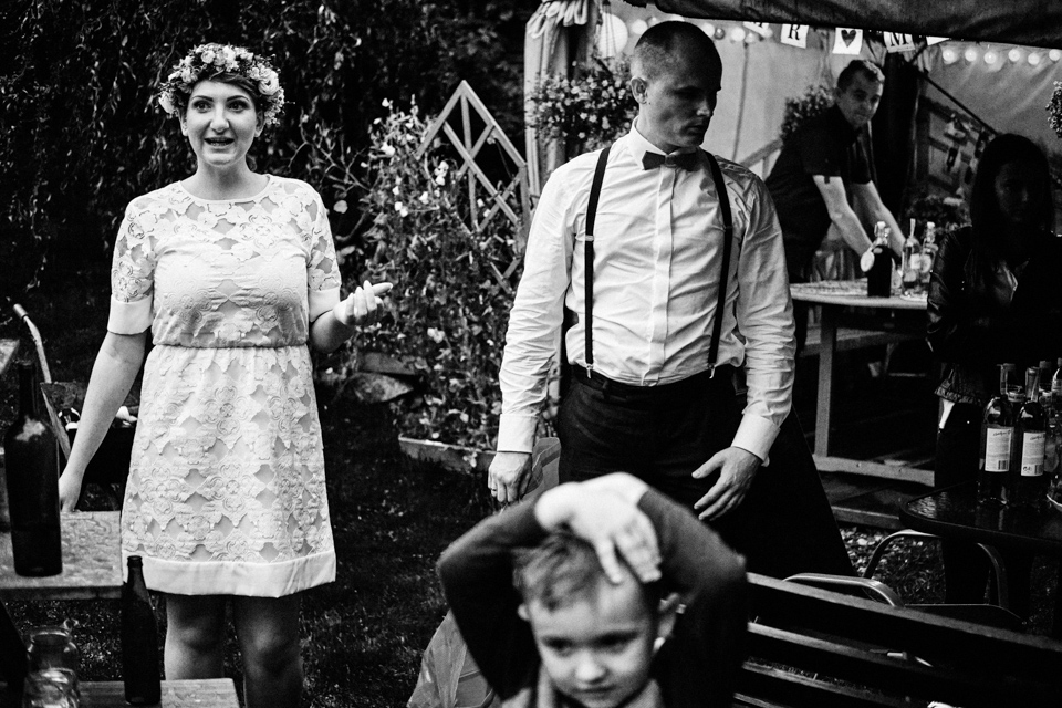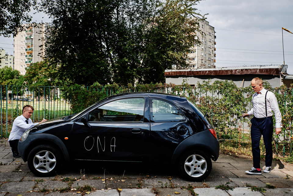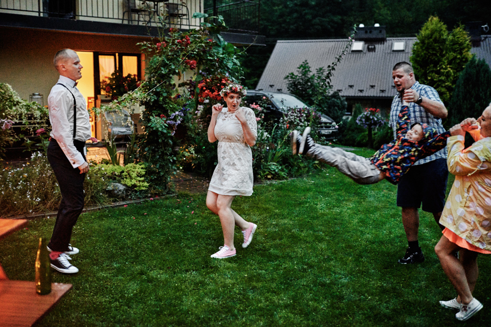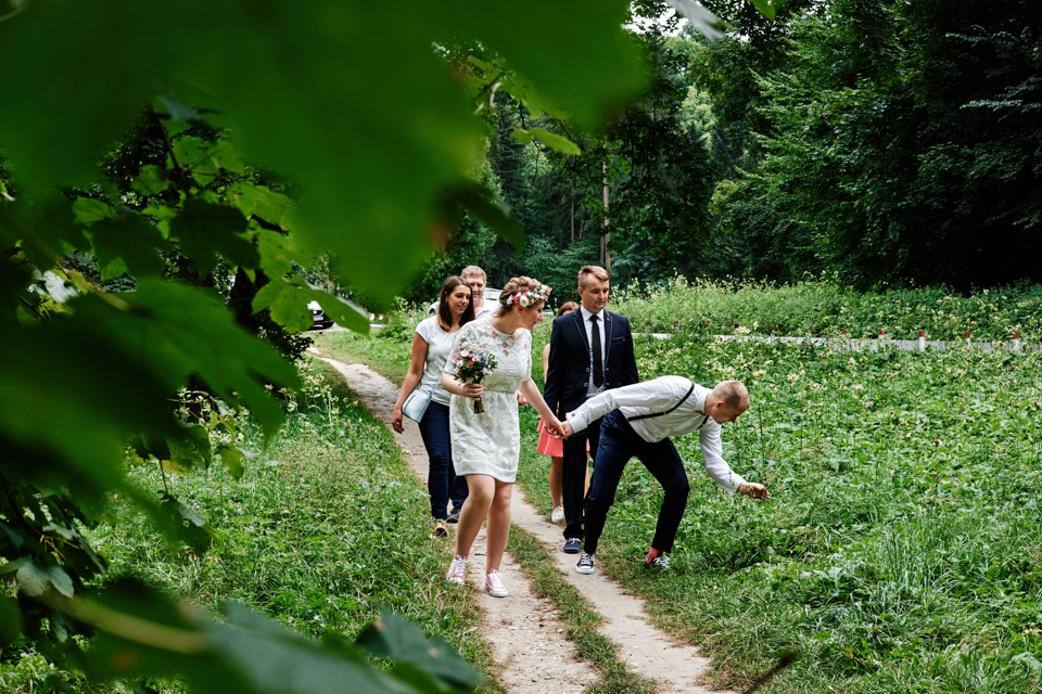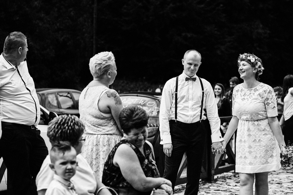 na początek będzie słonecznie ale plenerowe wesele w deszczu i przemoknięta para młoda to niecodzienny widok. Ale jeśli ktoś maluje swoje auto do ślubu flamastrami, zna Beksińskiego i lubi woodstockowe klimaty nie może się przejmować takim detalem jak ulewa.