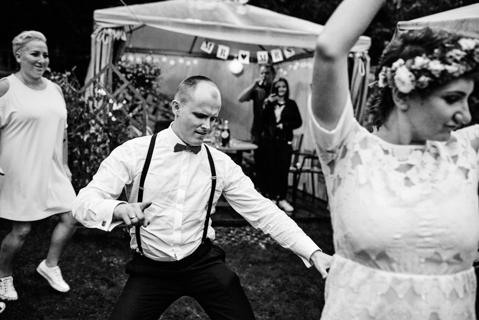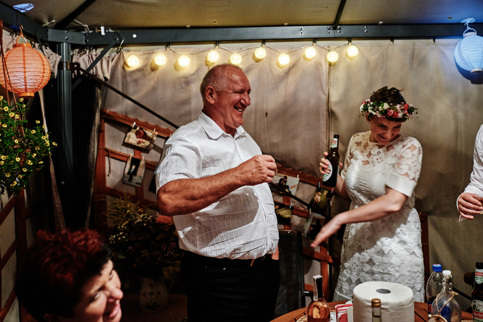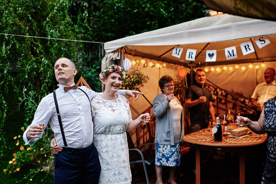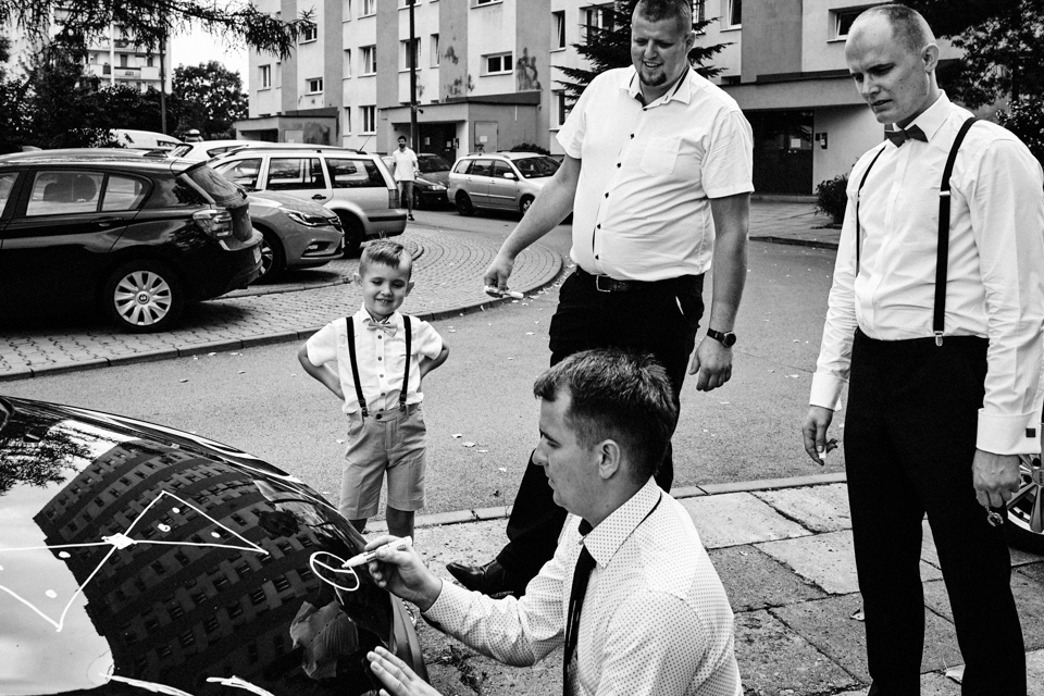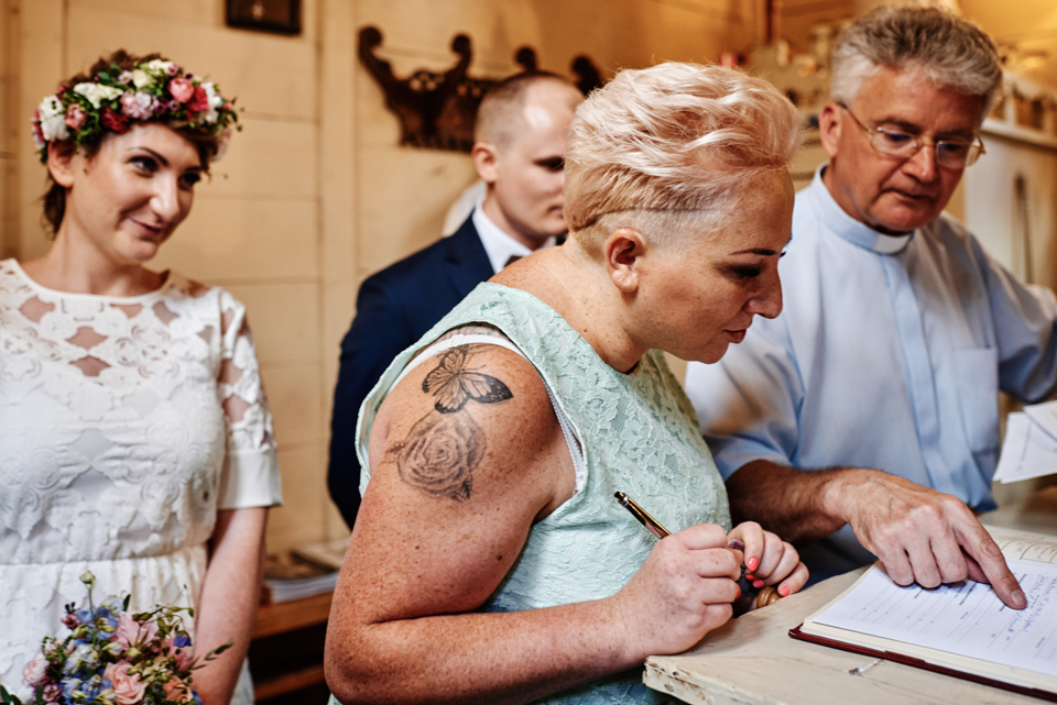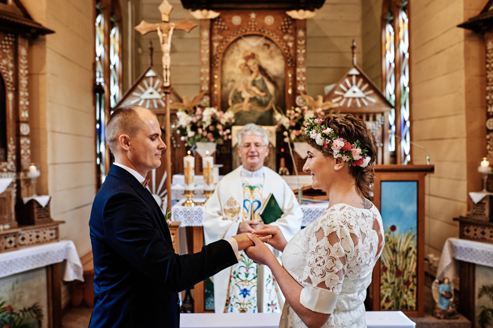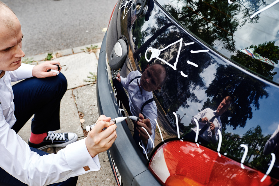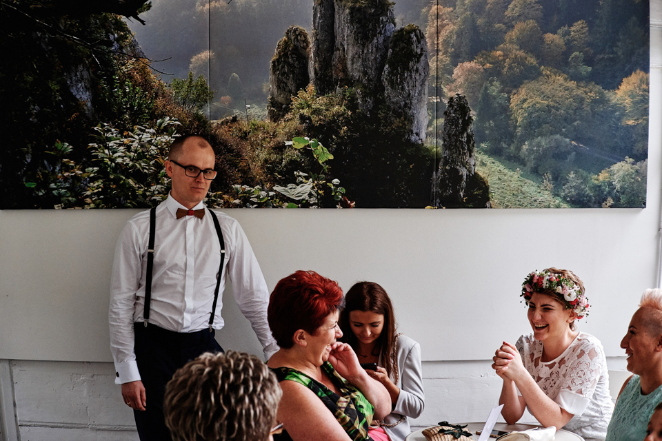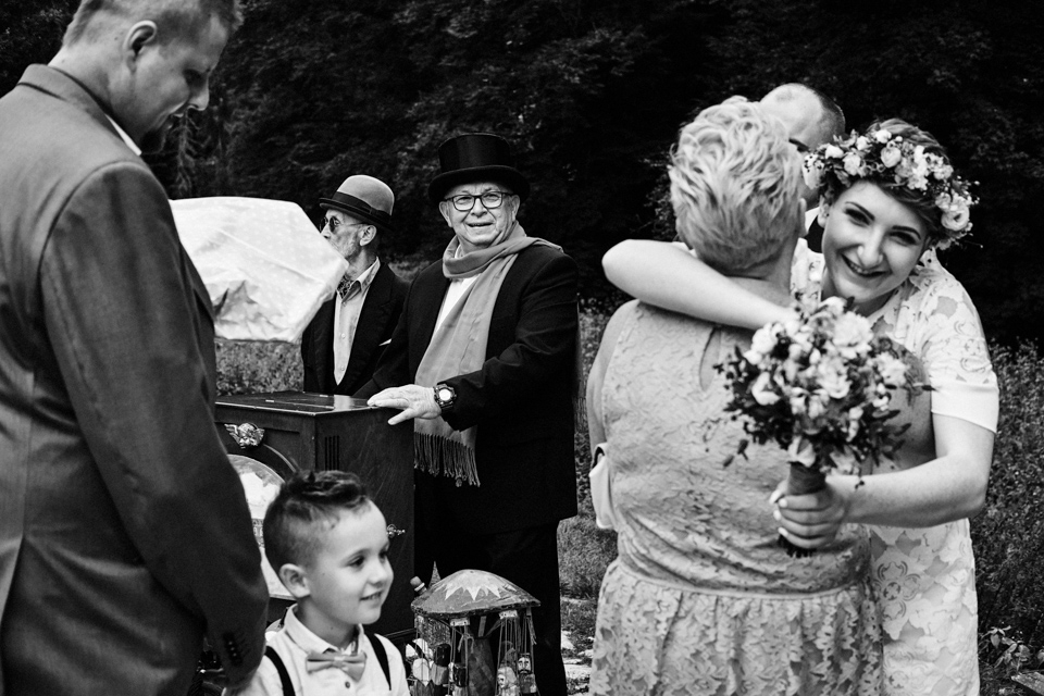 na początek będzie słonecznie ale plenerowe wesele w deszczu i przemoknięta para młoda to niecodzienny widok. Ale jeśli ktoś maluje swoje auto do ślubu flamastrami, zna Beksińskiego i lubi woodstockowe klimaty nie może się przejmować takim detalem jak ulewa.